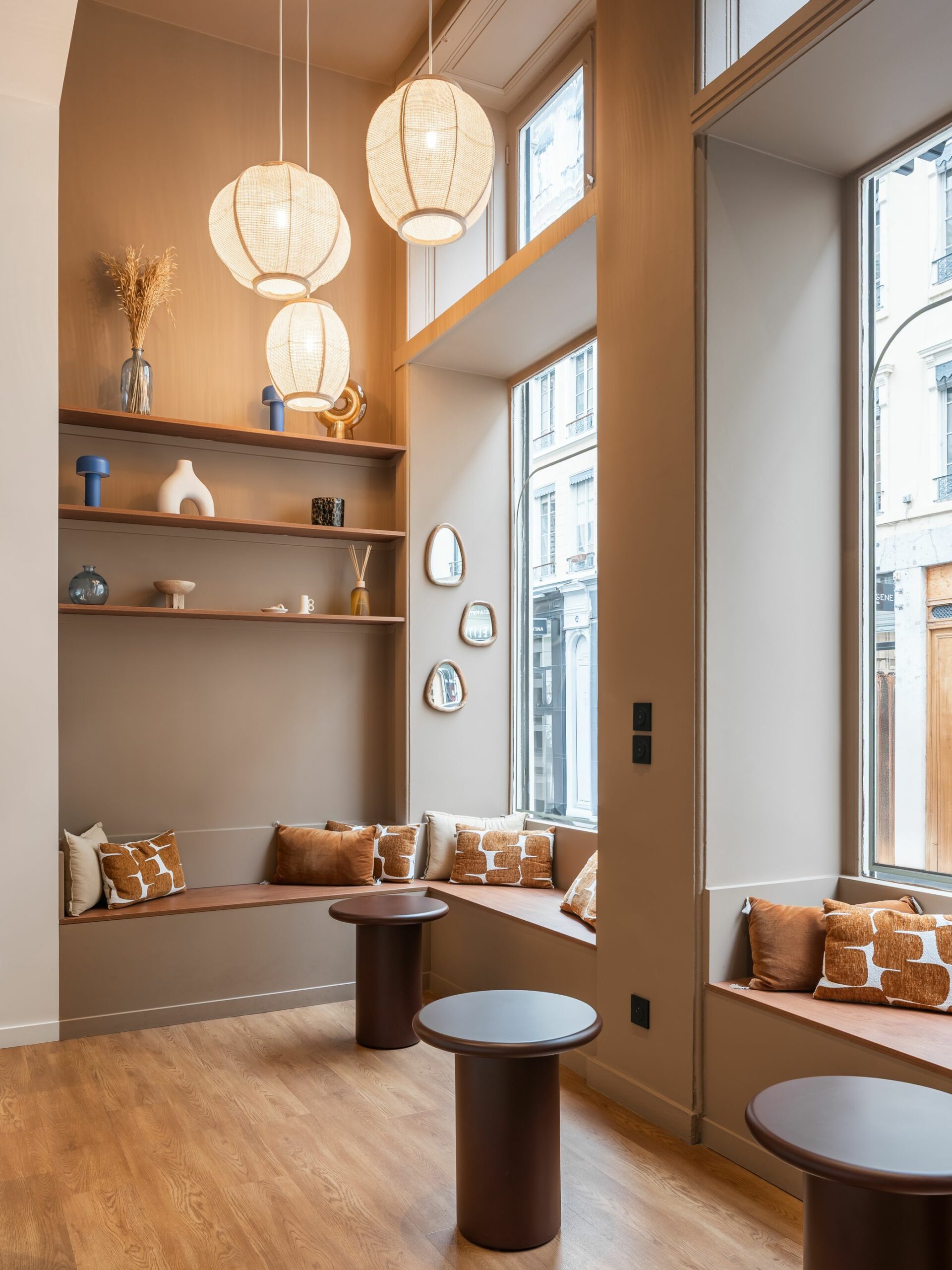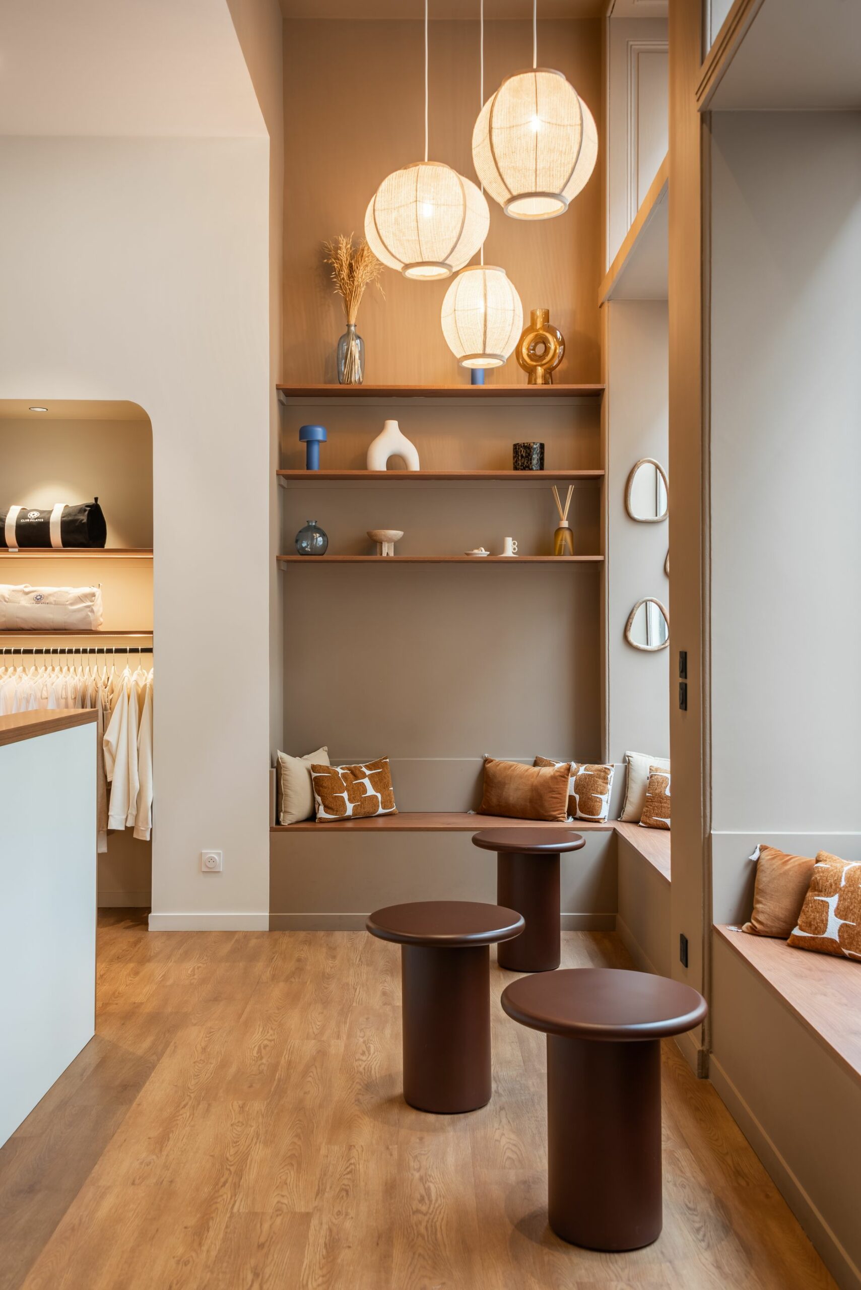 Le projet a intégré les démarches administratives nécessaires : Déclaration Préalable pour la façade soumis aux ABF, un changement d’enseigne, ainsi qu’une Autorisation de Travaux pour la mise en conformité ERP (accessibilité et sécurité incendie). Les circulations et accès ont été repensés pour offrir un parcours fluide et conforme aux normes.